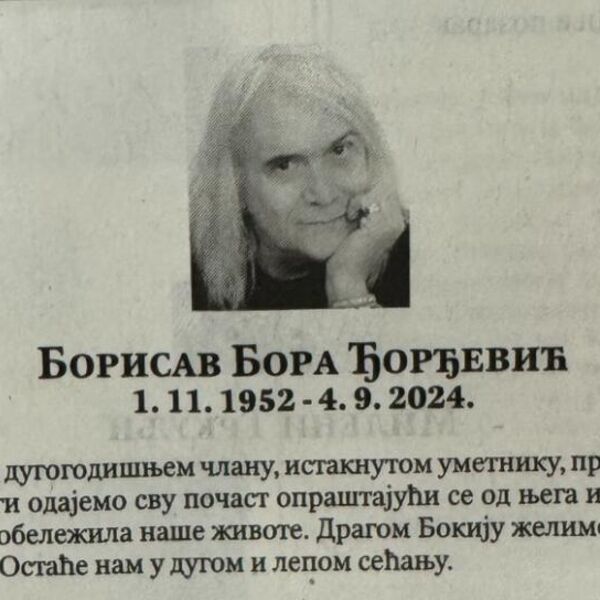 - Proglašava se Dan žalosti u gradu Čačku, povodom smrti muzičara Borisava Đorđevića - Bore Čorbe, tekstopisca i frontmena grupe Riblja čorba, rođenog Čačanina. Za Dan žalosti se određuje 6. septembar - piše u ukazu gradonačelnika Čačka Todorovića.