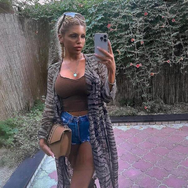 Ivana je pozirala u plavom kompletu, a posebno do izražaja dolazi njen dekolte, ono što primećujemo jeste da ne nosi brusthalter.