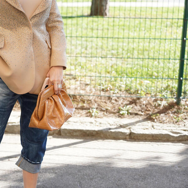 Za kožnu tobru za koju piše da je veganski proizvod, što znači da nije od prave kože, u krem boji, koju je ukombinovala uz sve je iskeširala oko 300 evra, dok farmerke poznatog modnog brenda koštaju oko 500 evra.