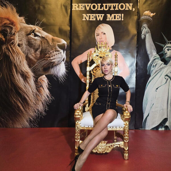 Na ulazu je postavljen plakat sa Jovaninim likom na kom piše "ego revolution, new me", dok je pored slika Kipa slobode, kao i ogromni lav.