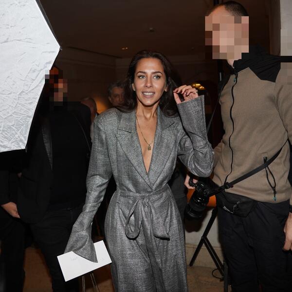 Glumica je na reviju stigla u šik sivom kombinezonu sa veoma zanimljivim trendi dugim rukavima.