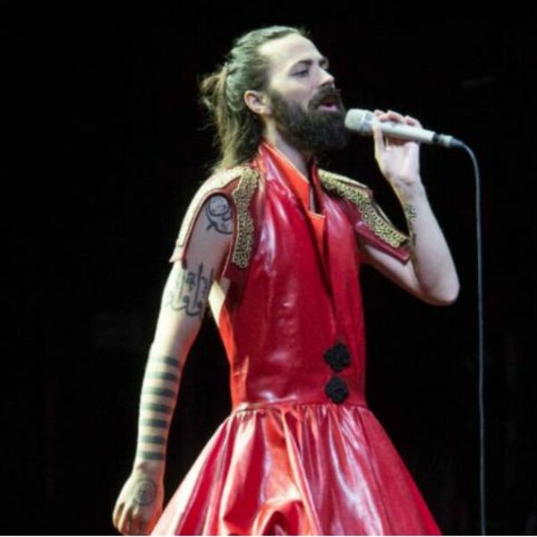 Božo se na sceni pojavio u belog haljini do poda, štiklama i kruni na glavi koja je bila sastavljena od šiblja.