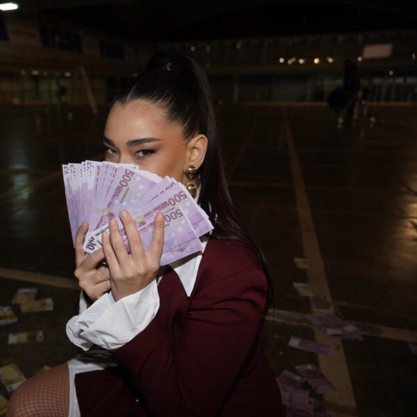 Sanja je pozirala sa štosom novčanica od 500 evra, kojima je prvo pokrivala lice, pa su joj se samo oči videle.