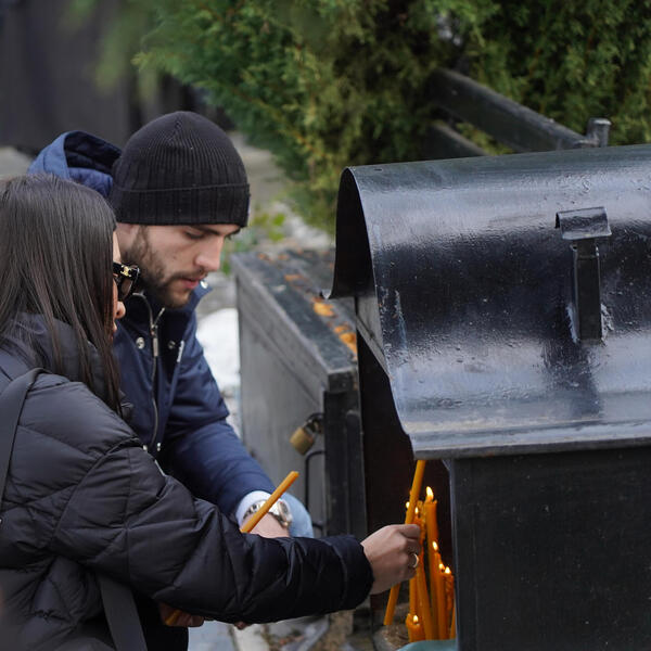 Anastasija je došla u crnini, a tugu je krila iza crnih naočara. Zajedno sa Veljko je zapalila sveću koju je kasnije i poljubila.