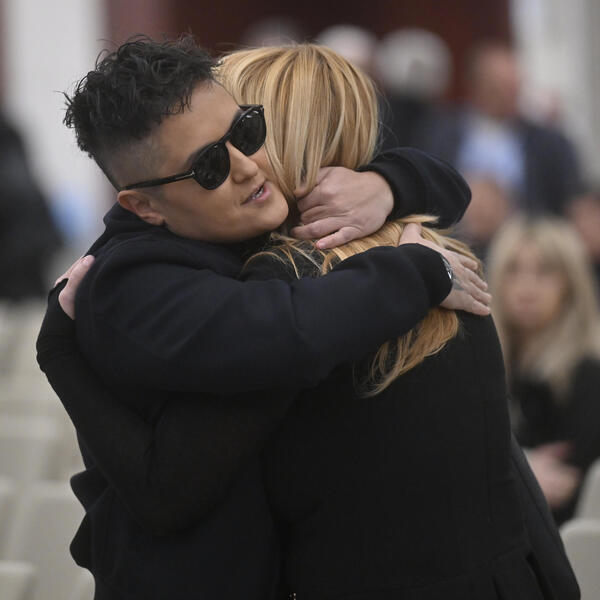 Vidno skrhani ušli su u salu, a udovica krije uplakano lice sa velikim sunčanim naočarima.