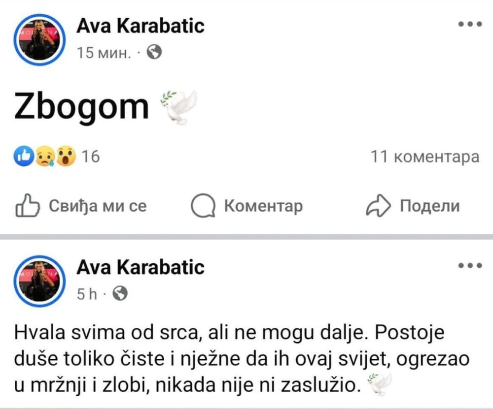 Starleta Ava Karabatić uznemirila je sve porukom na fejsbuku.