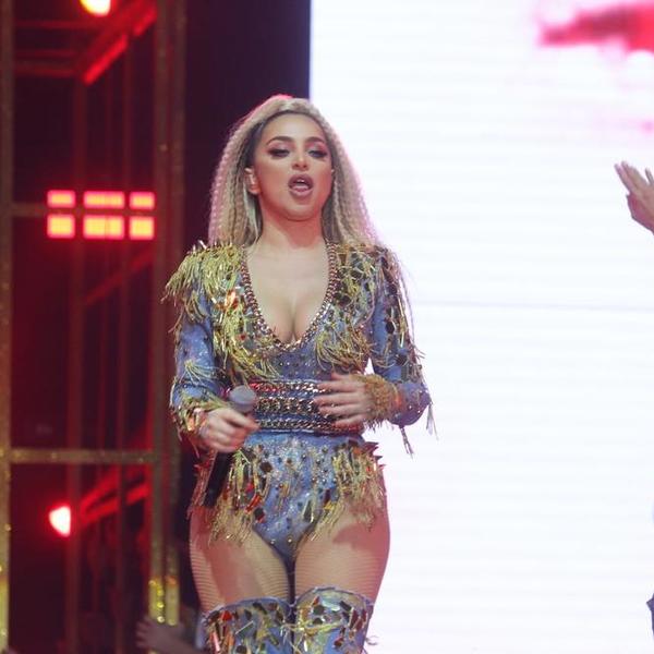 U vrelom izdanju zapalila je scenu čim se pojavila. Za dugo očekivani koncert odabrala je seksepilni bodi sa dugim rukavima i frindžom na grudima i kukovima, čizme preko kolena, a dugu kosu vezala je u visoki rep, dok su joj lokne padale preko ramena.