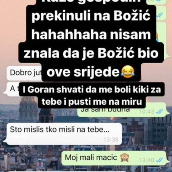 - Mi smo prekinuli prije dva tedna, kad sam ga ja ostavila, a do pre tri dana si me molio da ti se vratim. Tako da Gorane, prestani pričati, da ne bih ja počela - napisala je ljutito Hana.