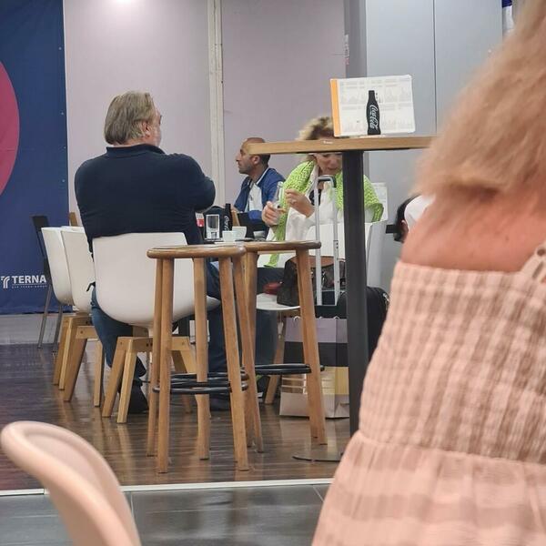 Brena i Boba su ostali da sede, čekajući svoj let za Crnu Goru, a za to vreme su gledali u telefone, pili vodu i razmenili poneku reč. Izgleda da ih je prilično umorilo čekanje, što se može zaključiti i po njihovim sumornim licima.