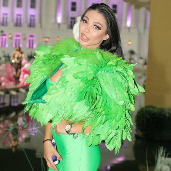 Maja se pojavila u zelenoj odevnoj kombinaciji, koja je podrazumevala veštačko perje i izreze kod intimnih delova tela.