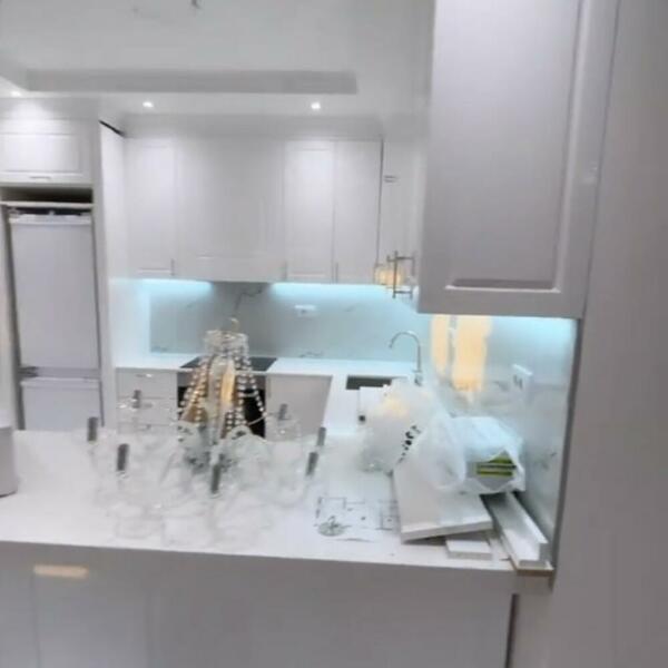Ona je ranije otvorila vrata svog doma i pokazala unutrašnjost, ali i ogromnu terasu, a sada i kako napreduju radovi. U stanu dominiraju bele boje, kuhinja je već gotova, ugradni plakari sa svetlom su na mestu, a tu je i kamin, sijaset kristalnih lustera i svetiljki, ali i ogledala od poda do plafona u skoro svakoj sobi.
