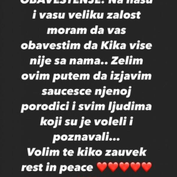 Tužnu vest potvrdila je i njena drugarica Laura, koja je objavila oproštajnu poruku na svom Instagram profilu: