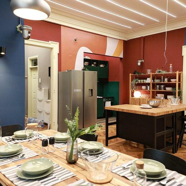 Na drugoj strani stana je velika prostorija koja vodi do dve spavaće sobe. I one su lepo ukrašene, zidovi su šareni, a u svakoj od njih se nalazi osam kreveta.