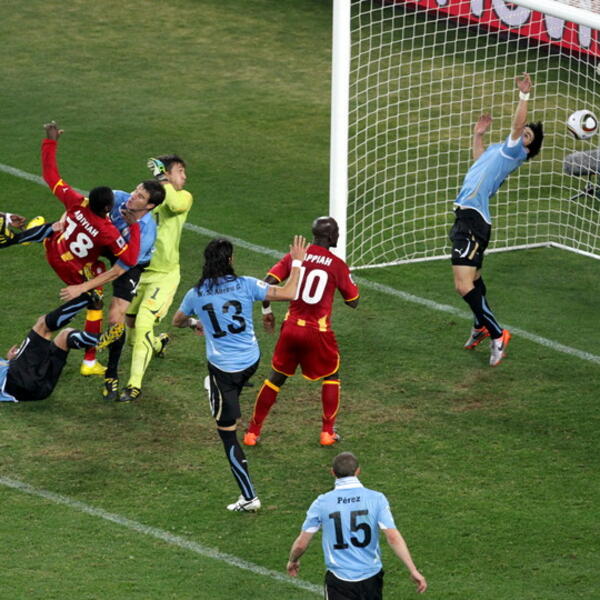 Namerno igranje rukom Suareza je učinilo da dobije crveni karton, a Gana da dobije šansu za prolaz dalje bez penal serije. Bukvalno poslednji udarac na meču bilo je udarac sa "bele tačke".