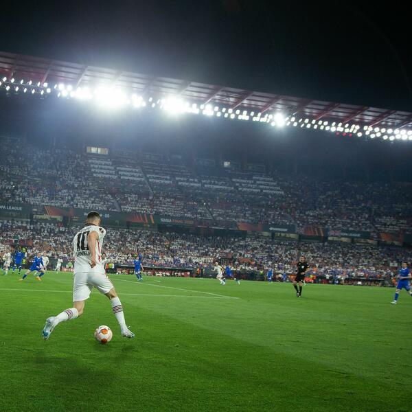 Na stadionu "Ramon Sančes Pishuan" u Sevilji igra se finale Lige Evrope u kome se sastaju Ajntraht Frankfurt i Glazgov Rendžers.
