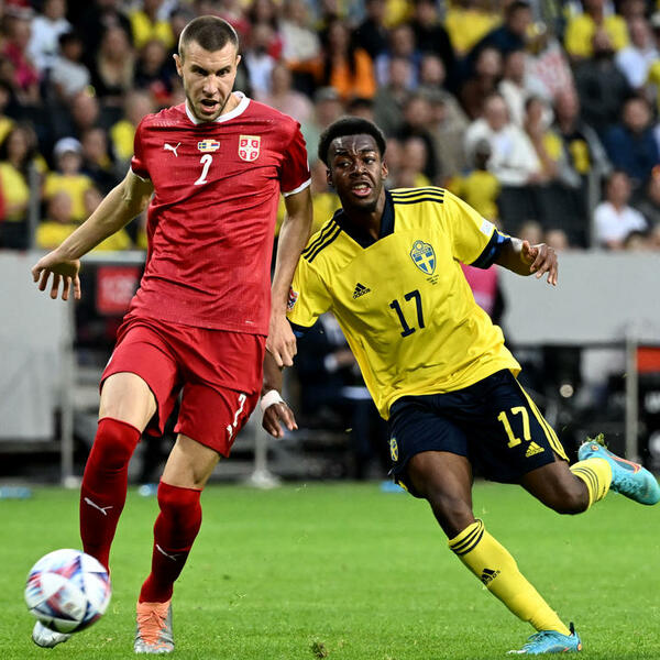 2. minut - Lukavo je Tadić pokušao dubinskom loptom kroz sredinu da uposli Jovića, ali su oprezni bili defanzivci Švedske