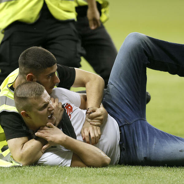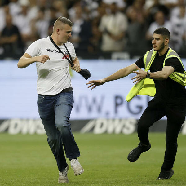 INCIDENT U FRANKFURTU! Obezbeđenje JEDVA savladalo navijača koji je prekinuo utakmicu! (FOTO)