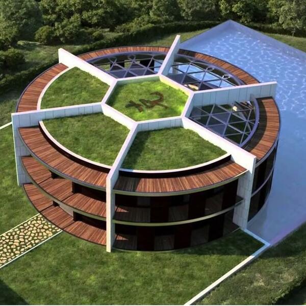 Ali to nije sve. Dok je sama struktura okrugla, ostatak parcele izgleda poput fudbalskog terena podeljenog na dva dela - prvi ! Takođe, sa strukturom ispred glavnog objekta, iz vazduha ova kuća izgleda kao broj 10 – broj na drese poznatog fudbalera u Argentini i nekad u Barseloni - i zato se zove One-Zero Eco-House.