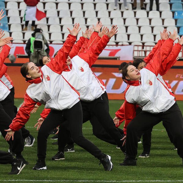 Upliličen je performans tokom kog su mladi formirali broj 1969, godinu rođenja i 2022, godinu smrti Siniše Mihajlovića. Tu je i prepoznatljivi slobodni udarac, a za kraj je razvijena njegova fotografija prečnika kruga na centru igrališta.