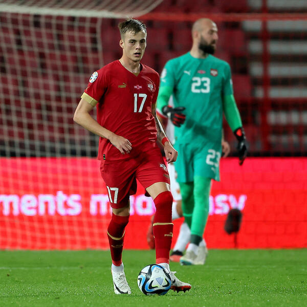 Dobio je loptu od Saše Lukića, ali i dosta prostora unutar šesnaesterca Crne Gore. Namestio se i spoljnom sa mnogo efea poslao loptu u suprotan ugao za prelep gol i vođstvo Srbije.