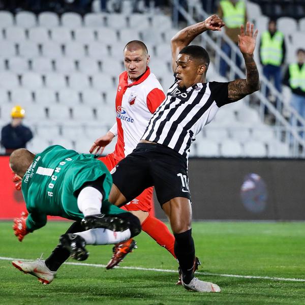 29' 1:0 ZA PARTIZAN! Rikardu Gomešu je Rockov odbranio penal, ali se lopta opet odbila momku sa Zelenortskih ostrva, koji ju je potom smestio u mrežu. Međutim, prilikom toga je udario golmana Voše, ali tek kada je lopte ušla u gol. Zato, govora u faulu nad čuvarom mreže nema, iako je dobio udarac u petercu, gde je zaštićen kao beli medved.