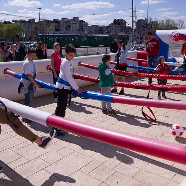 Kvartet šampiona Srbije se fotografisao sa prisutnima, delio autograme i igrao nesvakidašnji stoni fudbal. Tako su svi zvezdaši imali priliku da se oprobaju sa crveno-belim fudbalerima u neobičnoj igri i steknu uspomene za pamćenje.