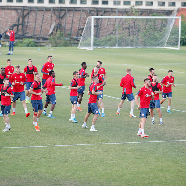 Crveno-beli su odradili i poslednje pripreme za utakmicu koja se igra u utorak od 21 čas, pod budnim okom trenera Milojevića, ali i članova uprave koji su sve to posmatrali sa terase.