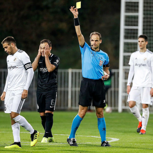 6. minut - Sadik je na zemlji, Šapić je udario napadača Partizana, ali sudija nije svirao ništa.
