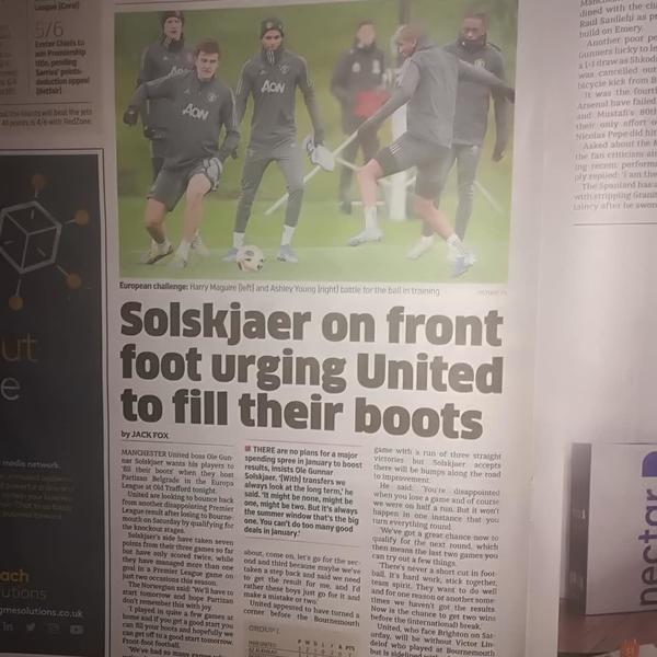 Vreme je za ono što su svi igrači Partizana sanjali - to famozno gostovanje na velelepnom "Old Trafordu". Mančester je grad koji diše za fudbal, posvedočili smo tome dok smo sa navijačima Junajteda u sredu uveče posmatrali utakmice Crvena zvezda - Totenhem i Atalanta - Mančester Siti, pošto su svaki loš potez Gvardiolinih izabranika "Đavoli" propratili gromoglasnim aplauzom i urlicima. Sada je došao red na onaj legendarniji klub iz engleskog centra tekstila da odmeri snage sa rivalom kome je pre dve nedelje gostovao u Beogradu i odneo srećan trijumf rezultatom 1:0 posle onog penala koji je napravio Nemanja Miletić krajem prvog poluvremena. Mnogi su posle tog meča krivili španskog sudiju Estradu što nije svirao jedanaesterac i za crno-bele u drugom poluvremenu, a realno je mogao, međutim, sada je došlo vreme da se pokaže inat i napravi što bolji rezultat na "Old Trafordu" večeras od 21 čas po centralnoevropskom, 20 časova po lokalnom vremenu. Malo smo procunjali Mančesterom ovog kišnog jutra, koje izgleda smeta samo nama iz Srbije, pošto ljudi ovde najnormalnije šetaju ulicama bez kišobrana, navikli su na tmurno i depresivno vreme u gradu u kom, prema rečima pojedinih fudbalera koji su igrali ovde, kiša mora da padne bar jednom na sat vremena. Naišli smo na lokalne novine u kojima je dosta pažnje posvećeno utakmici između Junajteda i Partizana.