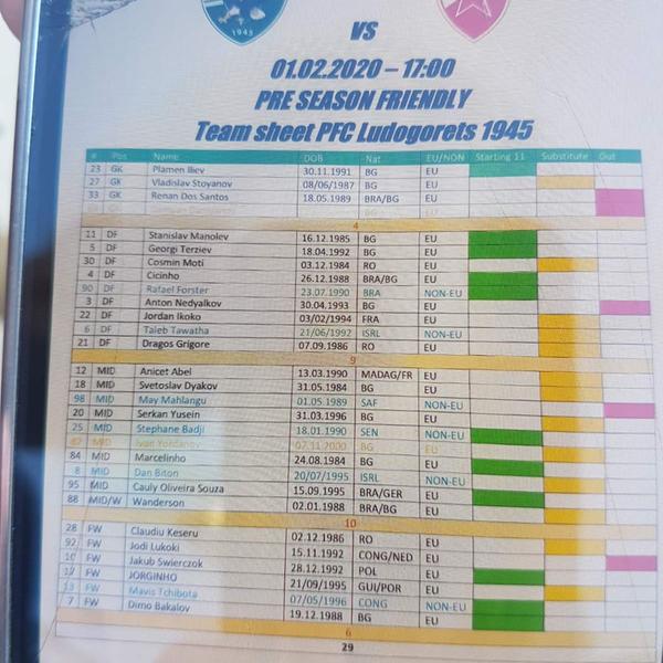 Ludogorec: Iliev – Sisinjo, Terzijev, Forster, Manolev – Bađi, Marselinjo,Kauli – Bakalov, Čibota – Švirčok. Igrali su još: Tavata, Lukoki, Ikoko, Aniset, Žoržinjo, Vanderson, Đakov.