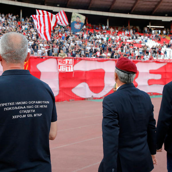 19.10 - Navijači su pre utakmice pozdravili futsalere Crvene zvezde, zatim i pripadnike 63. Padobranske divizije i na kraju heroje sa Košara.