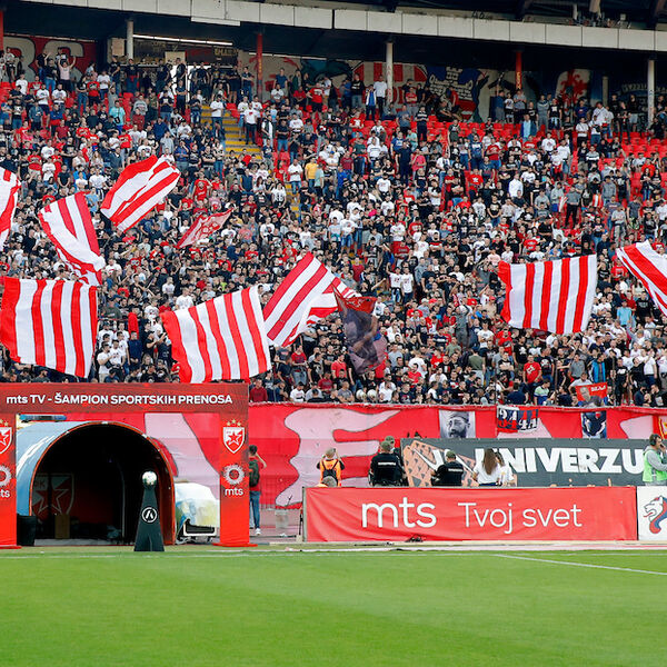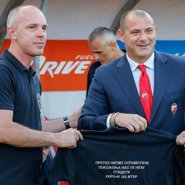19.15 - Navijači Zvezde su podigli i zanimljivu koreografiju na severnoj tribini, tačnije šetalicu sa likom Vladimira Petrovića Pižona iz vremena kada je igrao za crveno-bele koja je ujedno i podsetnica da klub ove godine je proslavio 75 godina postojanja.