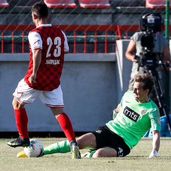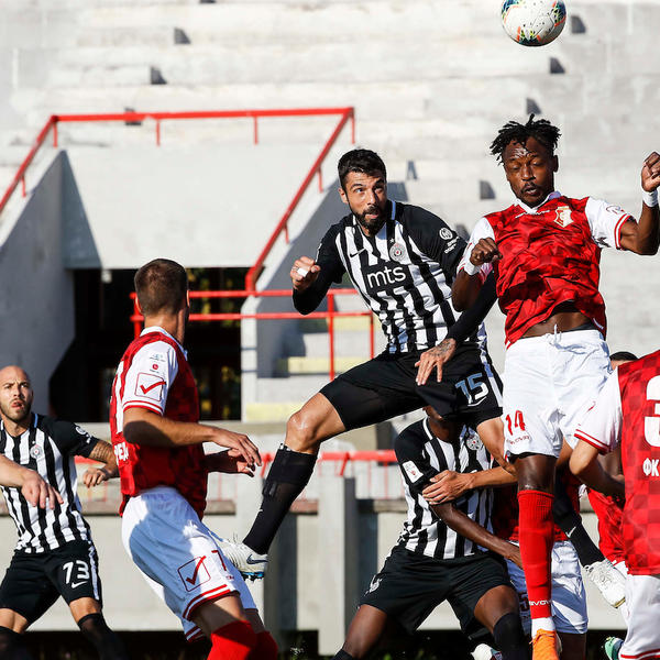 36. minut - Partizan je posle one pauze za osveženje preuzeo kontrolu lopte, ali odlično su domaći zatvorili sve prilaze svom golu, pa osim one solidne prilike kada se Miletić ubacio iz drugog plana, nije bilo nikakve opasnosti po gol Živkovića.