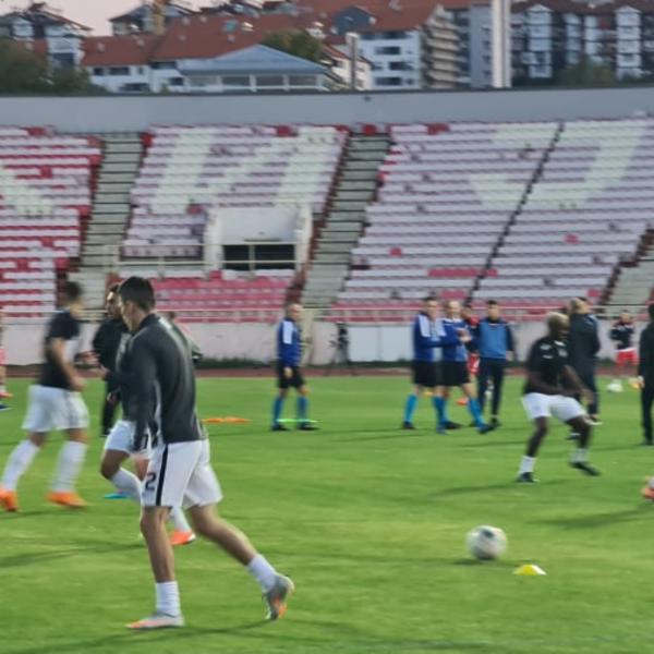 16.33 - Atmosfera sa zagrevanja fudbalera Partizana.
