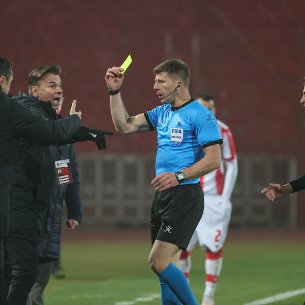 73. minut - Prigovara Stanoje Simoviću, posle kog je Marković dobio žuti karton.