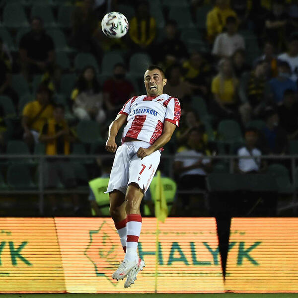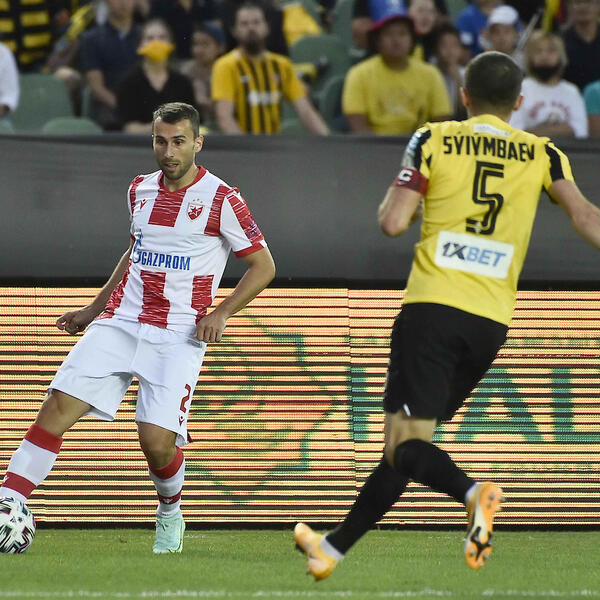 Fudbaleri Crvene zvezde poraženi su u prvoj utakmici 2. kola kvalifikacija za Ligu šampiona na gostovanju Kairatu iz Almate - 2:1 (1:0).