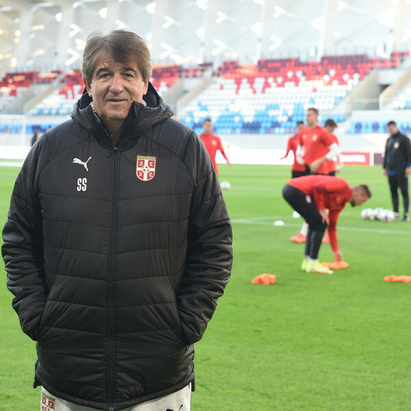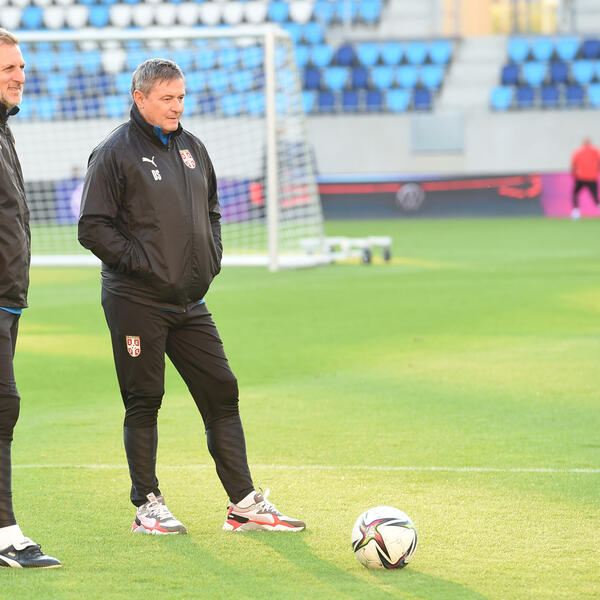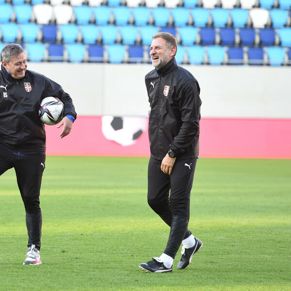 Selektor Dragan Stojković Piksi je sa saradnicima vodio trening, a prethodno je dao izjavu sa svojim očekivanjima od sutrašnjeg meča, ali i onih koji očekuje "Orlove" do kraja kvalifikacija, sa Azerbejdžanom u Beogradu 12. oktobra, pa sa Portugalom u Lisabonu u novembru.