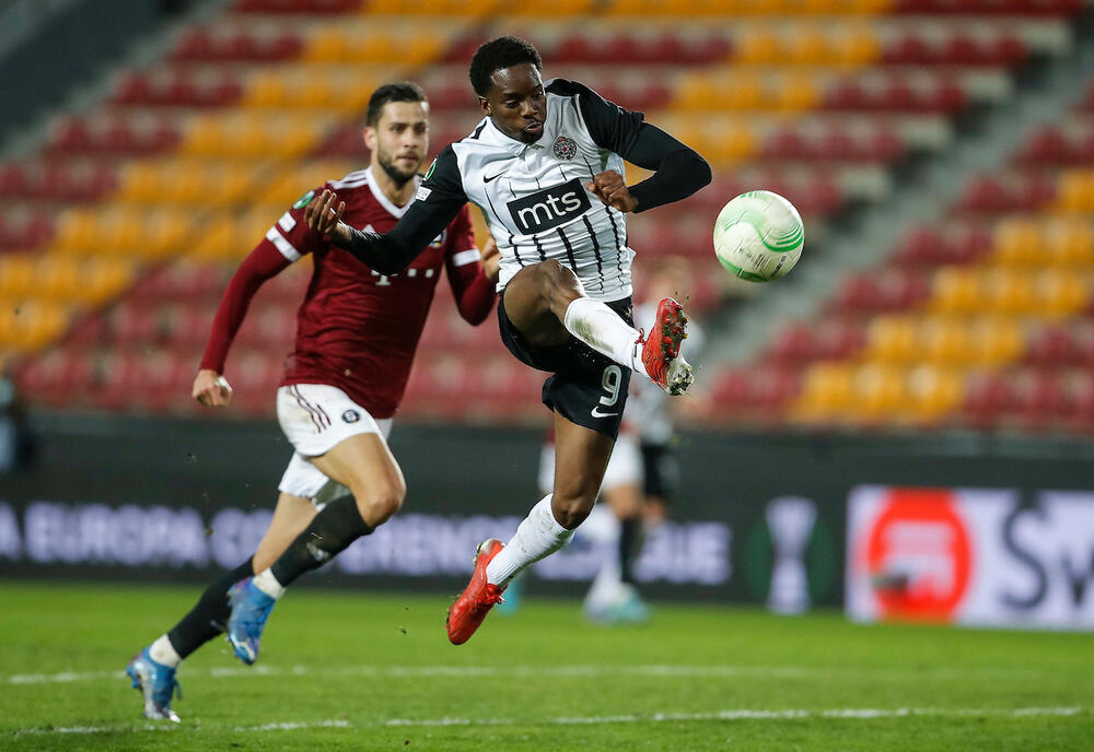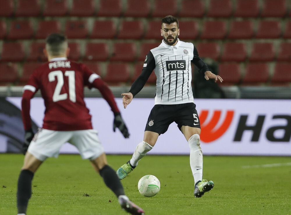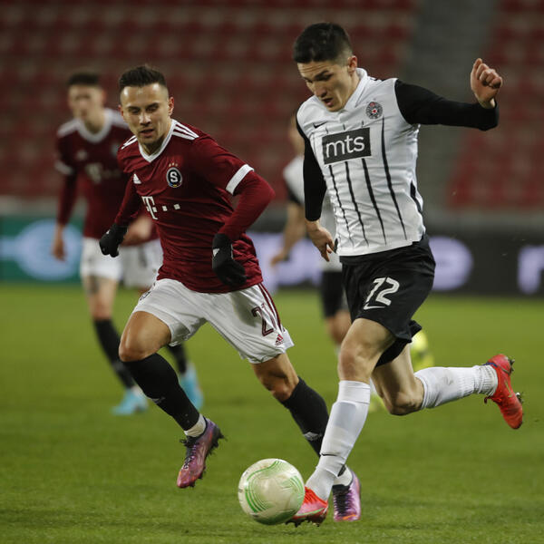 Fudbaleri Partizana su golom Kvinsija Meniga pobedili Spartu u Pragu u prvoj utakmici plej ofa Lige Konferencija sa 1:0.