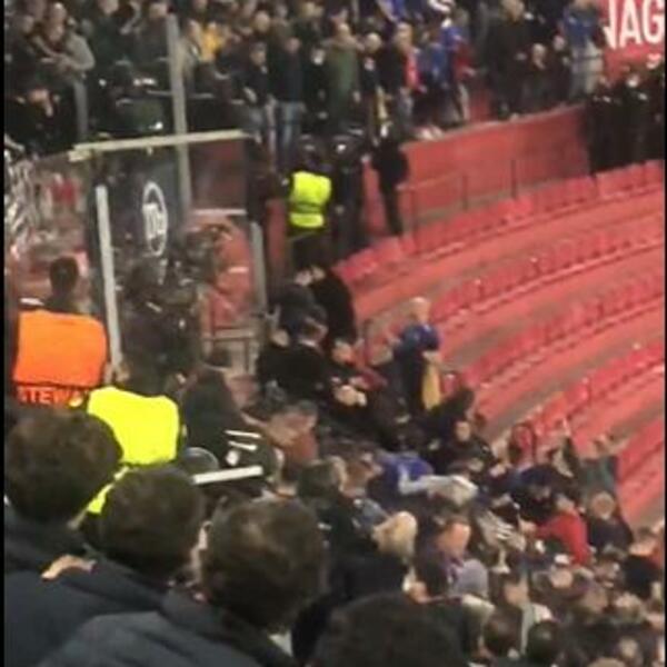 Navijači zagrebačkog Dinama nisu mirovali ni na stadionu Sevilje, tamo su tek pravili haos, pošto su pre toga izazvali nerede u samom gradu, gde su demolirali jedan kafić.