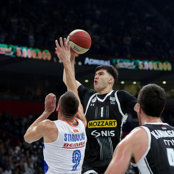 Crno-beli su od početka do kraja utakmice imali kontrolu, a na poluvremenu su vodili 59:41 uz monstruozno zakucavanje Tristana Vukčevića.