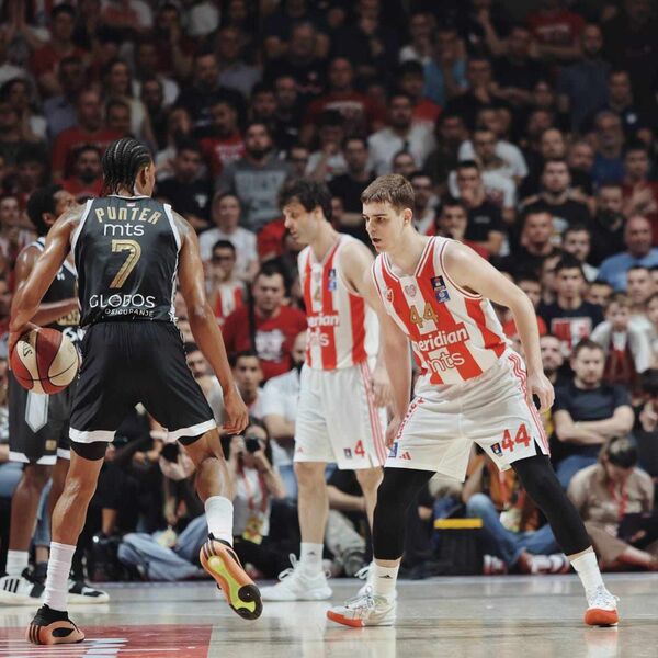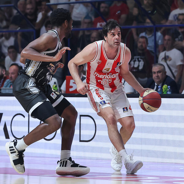 Košarkaši Crvene zvezde pobedili su Partizan sa 85:82 u prvoj utakmici finalne serije ABA lige u hali "Aleksandar Nikolić."