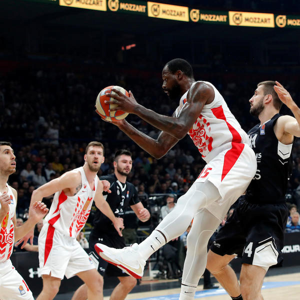 3. minut - Partizan pokušava šutem za tri da probije čvrstu Zvezdinu odbranu, ali nije pogodio ništa za sada. Na drugoj strani, Faje je raspoložen. Zvezda vodi 6:2.