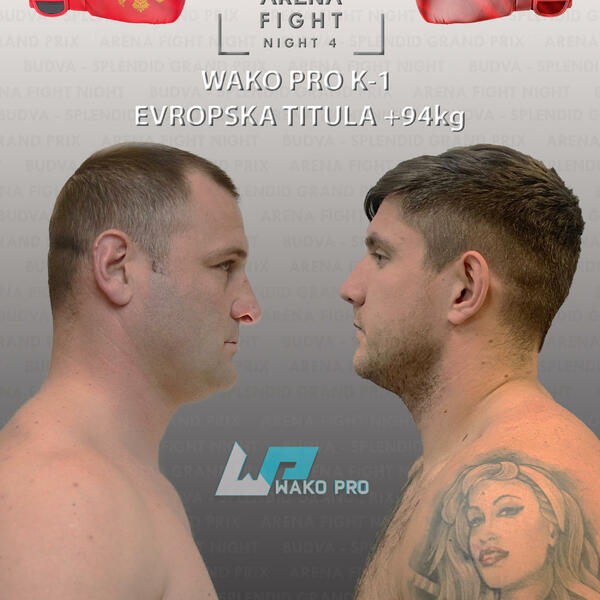 22:10 GLAVNI MEČ: Miroslav Vujović (MNE) - Mikal Blavdivič (POL) K1, +94 kg, 5 x 3 min