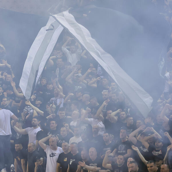 Banjica je prepuna navijača crno-belih, odnosno više od 2.500, a tu je i oko 50 pristalica PAOK-a i na startu je bačeno nekoliko topovskih udara i petardi.