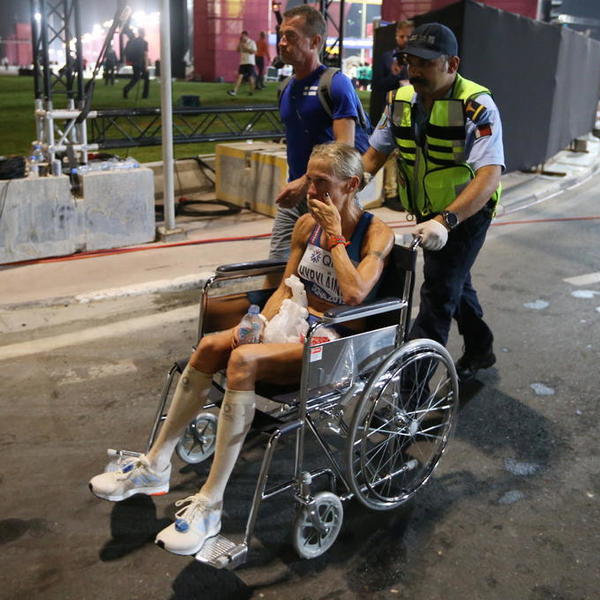 Veliki broj takmičarki noćnog maratona koji se održao u okviru Svetskog prvenstva u Dohi sa staze je izneto na nosilima, u kolicima, na rukama...