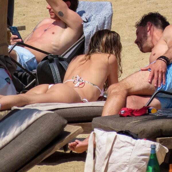 Paparaci su uhvatili temperamentnog trenera u bezbrižnim trenucima na plaži, par se ponašao poput školaraca, nisu skidali ruke jedno s drugoga, a lepa Karla je neprestano ljubila Argentinca.