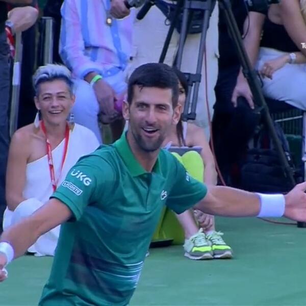Novak Đoković se lepo zabavljao na egzibiciji u Visokom, a nakon ovog sjajnog poteza, u šali je krenuo da se ispiše sa meča.