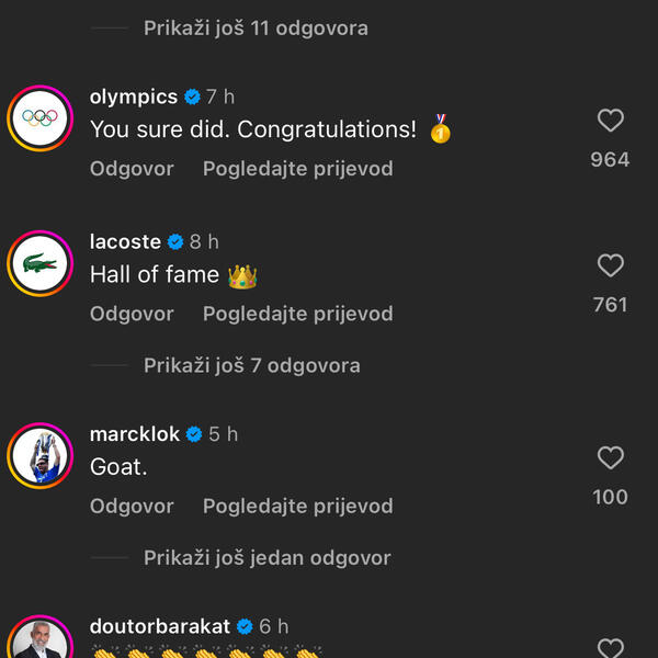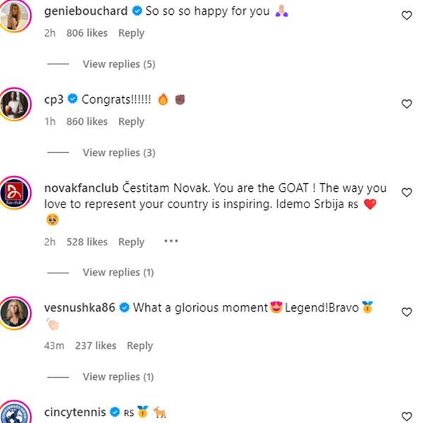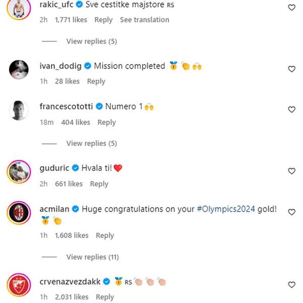 Novak ĐokovićZlatna medaljaMedaljaOlimpijske igre 2024Olimpijske igreČestitkeLebron DžejmsFrančesko TotiNejmarKris PolLuka ModrićMarseloZlatan Ibrahimović
