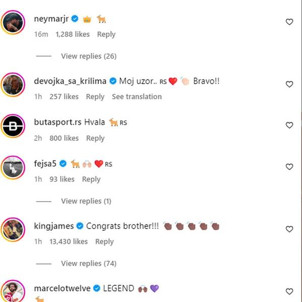Čestitku putem Instagram storija uputio je i legendarni fudbaler Zlatan Ibrahimović uz reči "jednostavno najbolji."
