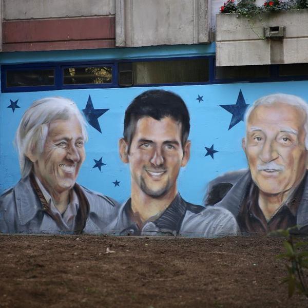 Tamo na Banjici, iza pomenute zgrade, višebojni mural pokazuje Đokovića orkuženog s jedne strane dedom, a s druge trenerom iz detinjstva, Jelenom Genčić. Žitelji prolaze pored toga i da ne trepnu. Neki možda i ne znaju da je Đoković živeo ovde, ali ne baš previše njih.